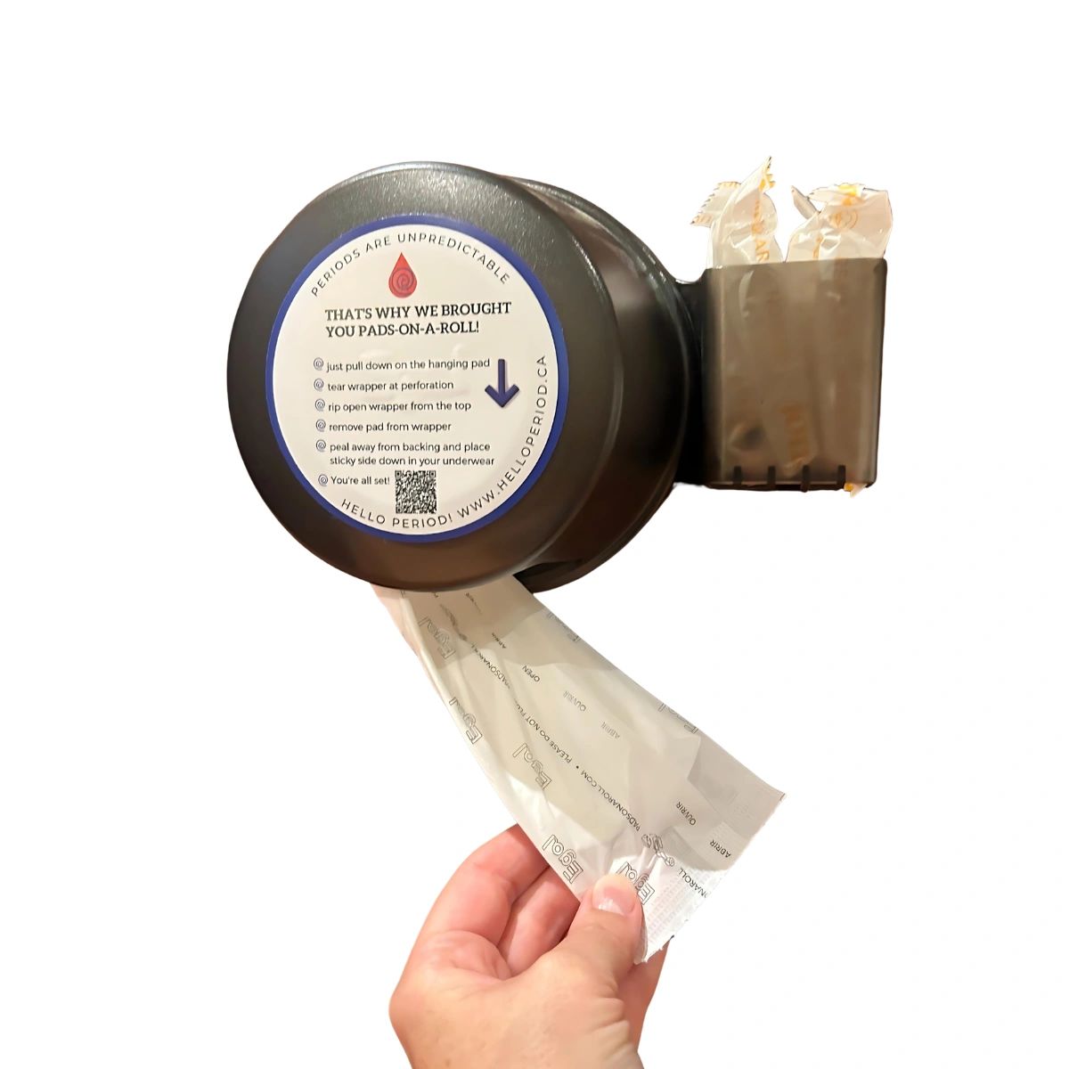 Before Pads-on-a-Roll there hadn't been a good solution for accesible menstrual products in washrooms- now they're available right next to the toilet paper, where they're needed most!